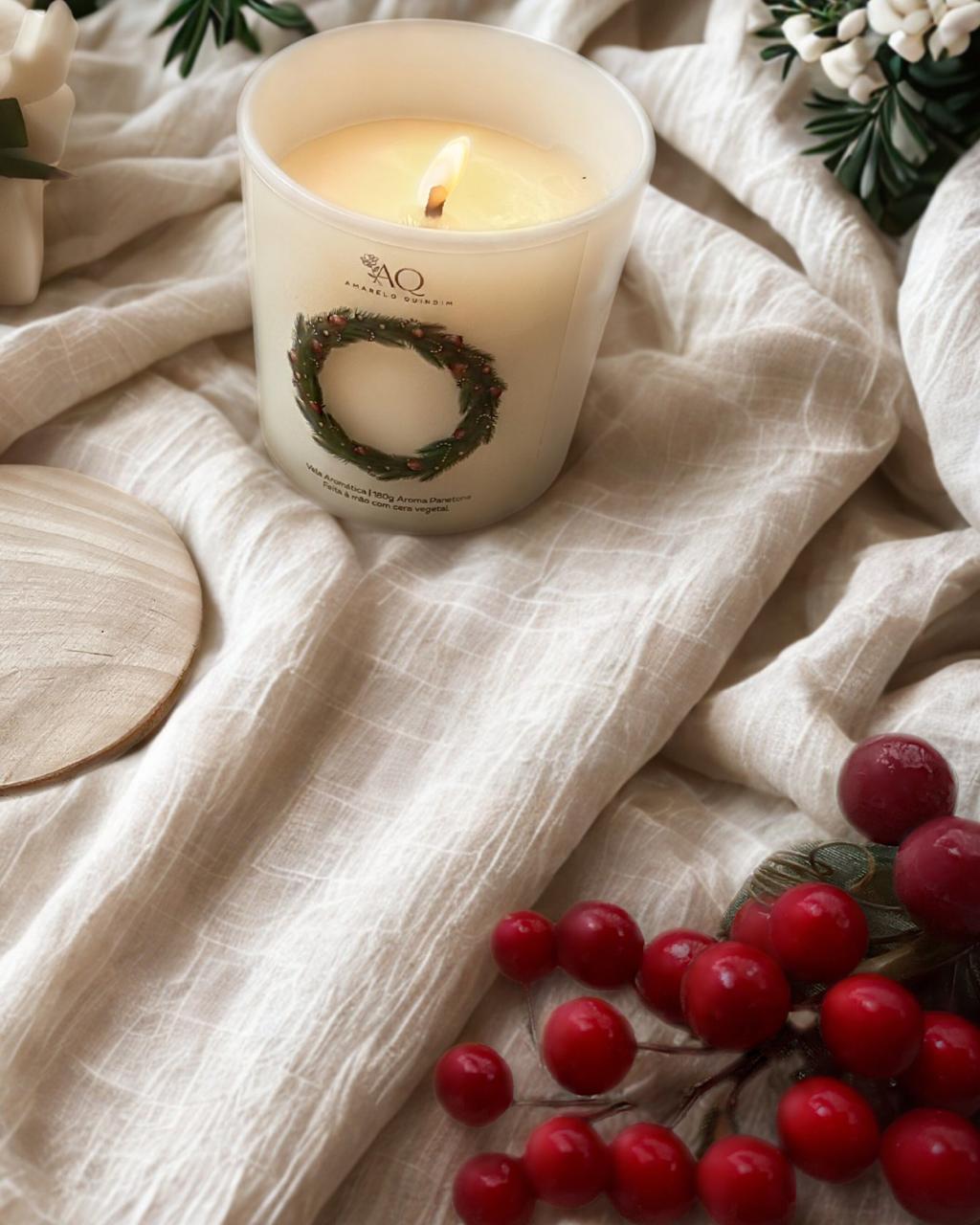 Uma vela pensada para criar memórias, com aroma clássico de Natal em uma embalagem especial de vidro para compor a decoração até a véspera de Natal e também a mesa posta da Ceia.